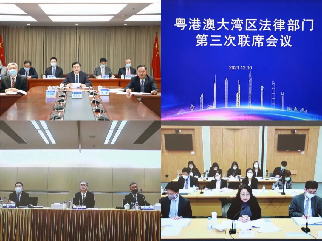 12月10日,粤港澳大湾区法律部门第三次联席会议以视频会议的形式召开,本次联席会议由广东省司法厅主办。广东省司法厅厅长,香港特别行政区政府律政司司长,澳门特别行政区政府行政法务司司长出席会议并交流意见。